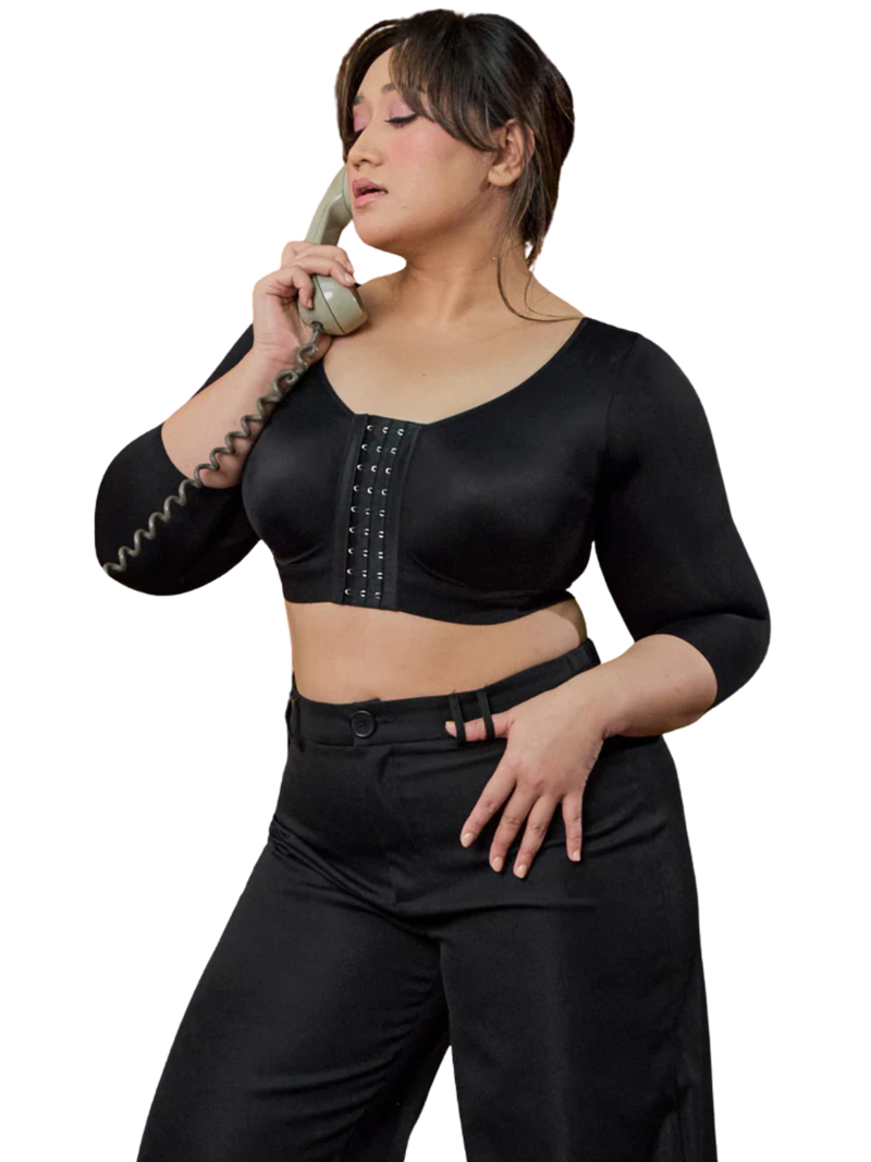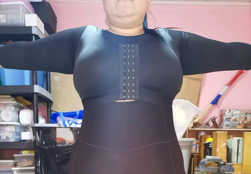 Its front-zip design makes it easy to wear without lifting your arms, and the compression is gentle enough for healing, yet effective for shaping.